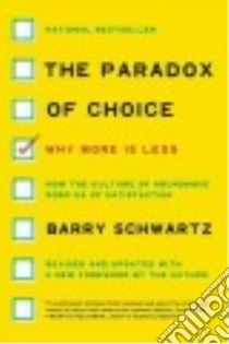 In The Paradox of Choice, Barry Schwartz explains at what point choice—the hallmark of individual freedom and self-determination that we so cherish—becomes detrimental to our psychological and emotional well-being. In accessible, engaging, and anecdotal prose, Schwartz shows how the dramatic explosion in choice—from the mundane to the profound challenges of balancing career, family, and individual needs—has paradoxically become a problem instead of a solution. Schwartz also shows how our obsession with choice encourages us to seek that which makes us feel worse.